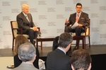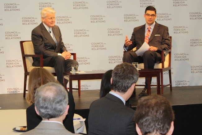 Frá umræðum í Council on Foreign Relations í Washingon; forseti ásamt Scott Borgerson.