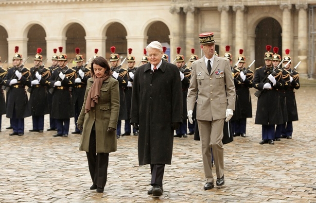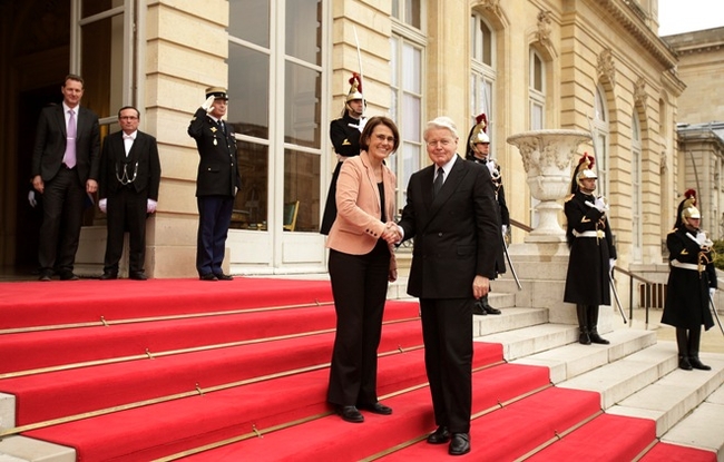 Forseti heilsar varaforseta Assemblée national, franska þjóðþingsins.