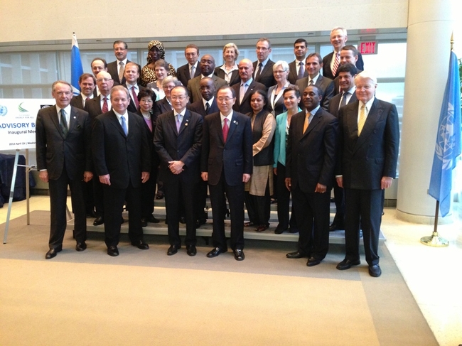 Frá fundi ráðgjafanefndar Sameinuðu þjóðanna um sjálfbæra orku. Á myndinni má sjá auk forseta aðalframkvæmdastjóra Sameinuðu þjóðanna og forstjóra Alþjóðabankans