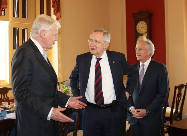 Fundur í Bandaríkjaþingi með Harry Reid, öldungadeildarþingmanni Nevada, og Mitch McConnell, öldungadeildarþingmanni Kentucky.