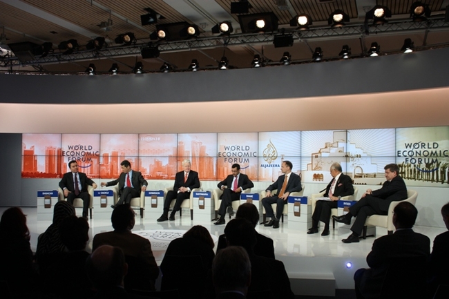 Umræður á Alþjóða efnahagsþinginu um efnahagshorfur á heimsvísu.