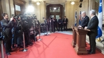 Rætt við blaðamenn í Québec.