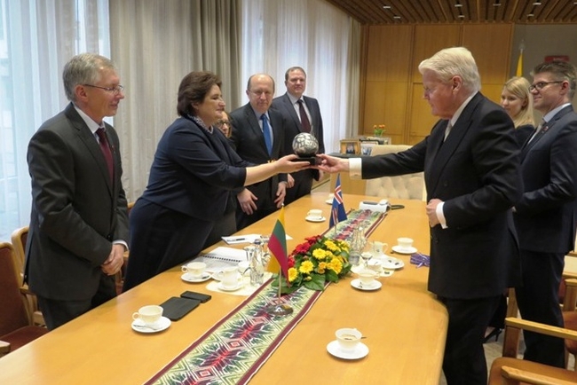 Forseti færir litháenska þinginu gjöf.