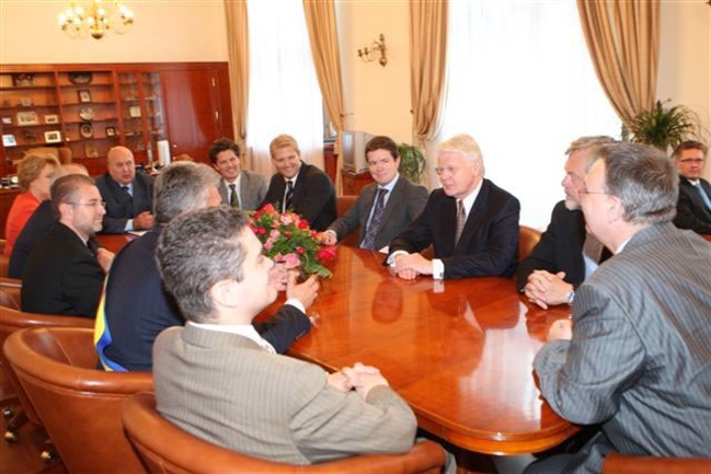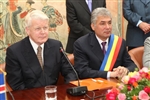 Adriean Videanu borgarstjóri Búkarest tekur á móti forseta og Björgvin Sigurðssyni viðskiptaráðherra