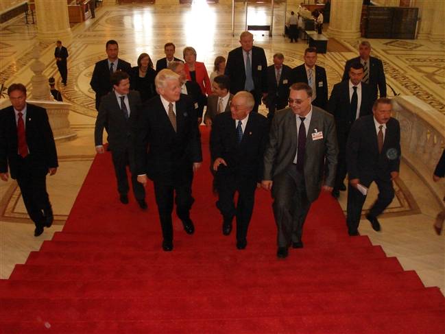 Forseti Íslands ásamt Nicolae Vacaroiu forseta Öldungadeildar Rúmeníuþings