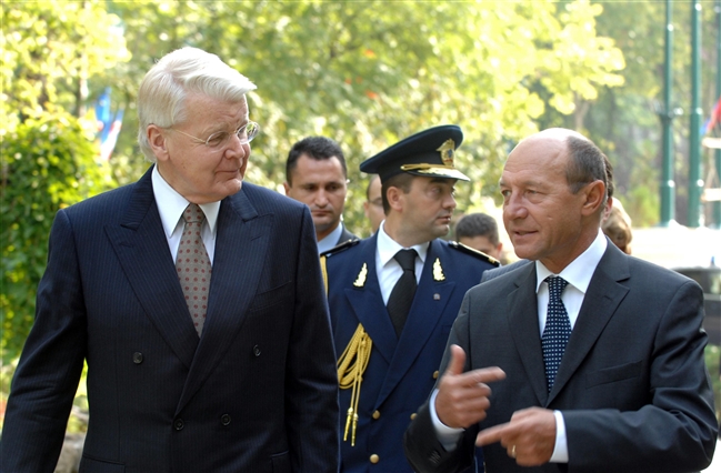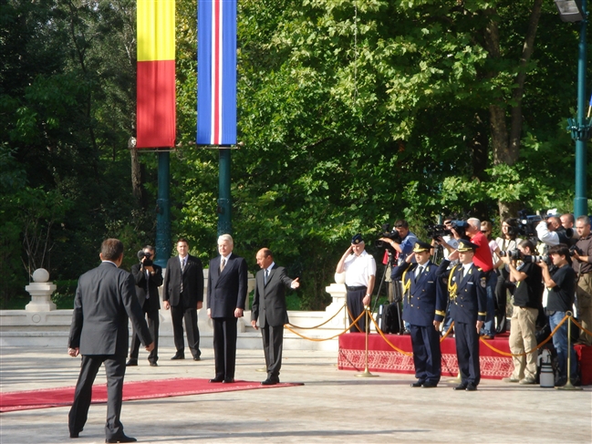 Traian Bãsescu forseti Rúmeníu tekur á móti forseta Íslands