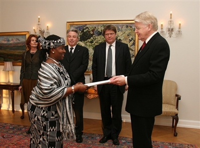 Sendiherra Gana, frú Maureen Abla Amematekpor afhendir forseta trúnaðarbréf á Bessastöðum. Á fundi þeirra var rætt um aukin samskipti Íslands við ríki Afríku og áhuga Gana á að kynnast reynslu Íslands í sjávarútvegi