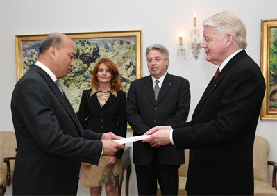 Forseti á fund með nýjum sendiherra Madagaskars, Alphonse Ralison, sem afhenti trúnaðarbréf sitt á Bessastöðum. Sendiherrann kynnti forseta þróunaráætlun Madagaskars og áherslur þeirra á að efla sjávarútveg, nýta aðrar auðlindir. Í ljósi reynslu sinnar gætu Íslendingar orðið að liði á ýmsum sviðum.