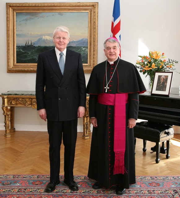 Forseti á fund með nýjum sendiherra Páfagarðs á Íslandi, Monsignor Emil Paul Tscherrig, sem afhenti trúnaðarbréf sitt á Bessastöðum. Rætt var um hina ríku hlutdeild kaþólskrar kirkju í sögu Íslendinga og fjölgun kaþólskra á Íslandi á undanförnum árum, mikilvægi þess að kaþólska kirkjan auðveldaði fólki af erlendum uppruna að laga sig að íslenskum aðstæðum. Einnig var rætt um heimsókn Jóhannesar Páls páfa árið 1989 en sendiherrann var meðal þeirra sem undirbjuggu heimsóknina af hálfu Páfagarðs. Einnig var fjallað um sögu Guðríðar Þorbjarnardóttur og hugmynd forseta um að færa Páfagarði styttu af Guðríði til minningar um ferðir hennar fyrir um 1000 árum en hún var fyrsta manneskjan í veraldarsögunni sem heimsótti bæði Róm og Ameríku.