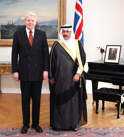 Forseti á fund með nýjum sendiherra Sádi Arabíu á Íslandi dr. Abdulrahman Gdaia sem afhenti trúnaðarbréf sitt á Bessastöðum. Rætt var um heimsókn sendinefndar frá Sádi Arabíu til Íslands á síðasta ári og aukin tengsl landanna og möguleika á samvinnu á sviði orkumála, læknisrannsókna og vatnsútflutnings.