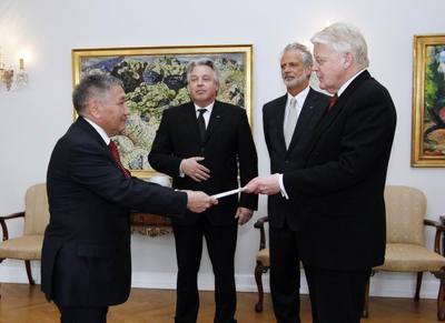 Forseti á fund með nýjum sendiherra Kasakstans á Íslandi hr. Kairat Abusseitov sem afhenti trúnaðarbréf á Bessastöðum. Rætt var um áhuga Kasakstans á að þróa aukin tengsl við Ísland, sækja í reynslusjóð á sviði nýtingar á hreinni orku og kanna möguleika á flugsamgöngum og viðskiptum með sjávarafurðir.