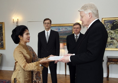 Forseti á fund með nýjum sendiherra Indónesíu Esti Andayani sem afhenti trúnaðarbréf sitt á Bessastöðum. Rætt var um væntanlegt heimsþing jarðhitasérfræðinga sem haldið verður í Indónesíu síðar í þessum mánuði, samvinnu landanna á sviði hreinnar orku og sjávarútvegs, sem og kynni forseta af Indónesíu á árum áður.