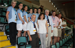 Frá setningarathöfninni; íslensku íþróttamennirnir eru í bláum búningum í miðri sveit þátttakenda.