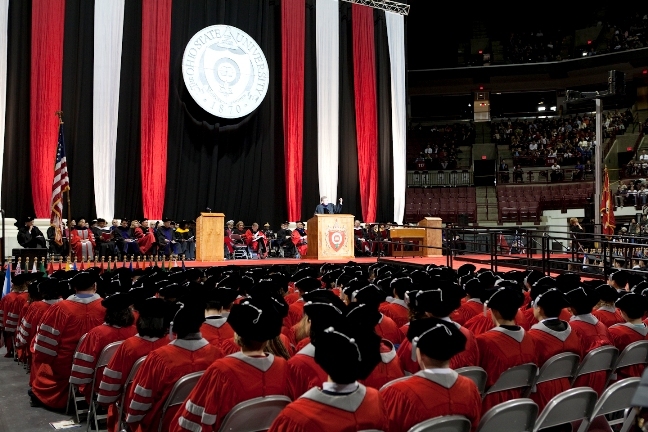 Fjölmenni mætt við útskriftarathöfn Ríkisháskólans í Ohio. Ljósmyndari: Kevin Fitzsimons.
