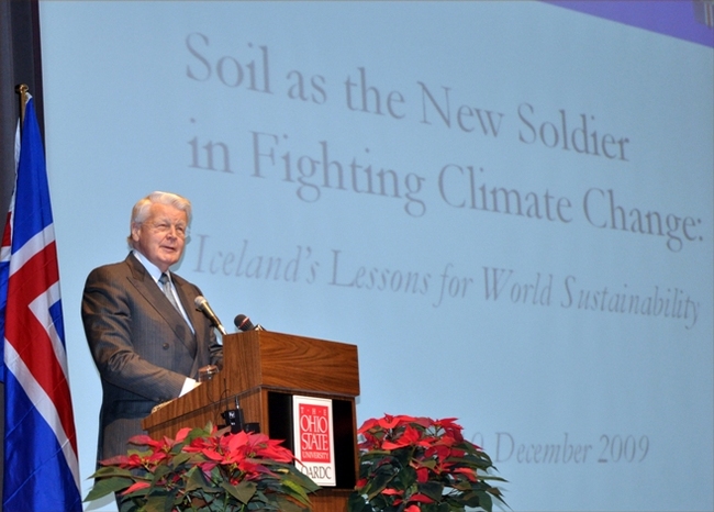 Forseti flytur fyrirlestur í Wooster í Ohio. Ljósmynd: Kenneth D. Chamberlain.