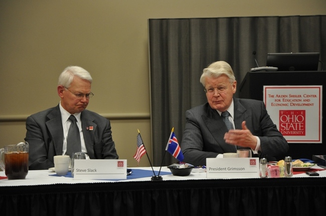 Forseti situr fyrir svörum ásamt Steve Slack, forstjóra Rannsóknarstofnunar landbúnaðarins við Ríkisháskólann í Ohio. Ljósmynd: Kenneth D. Chamberlain.