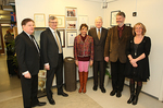 Fulltrúar sparisjóðanna, forsetahjón og skólastjórnendur standa við verðlaunagrip Íslensku menntaverðlaunanna.