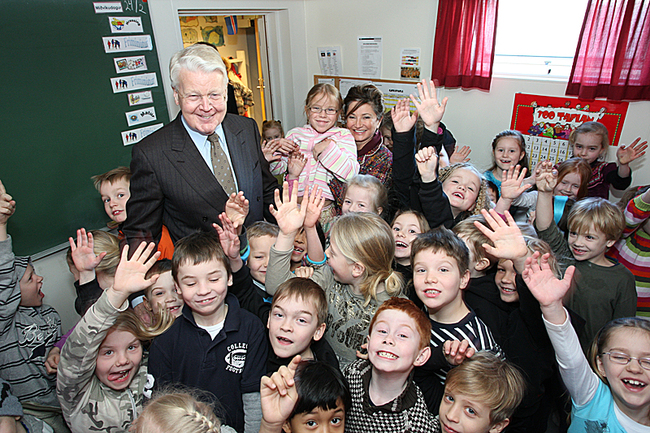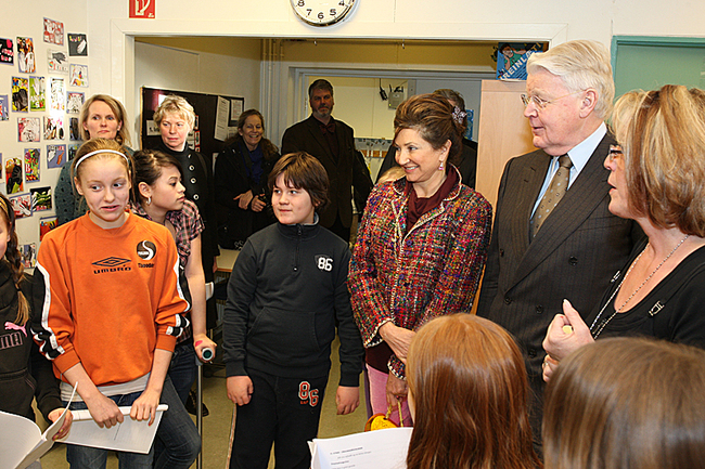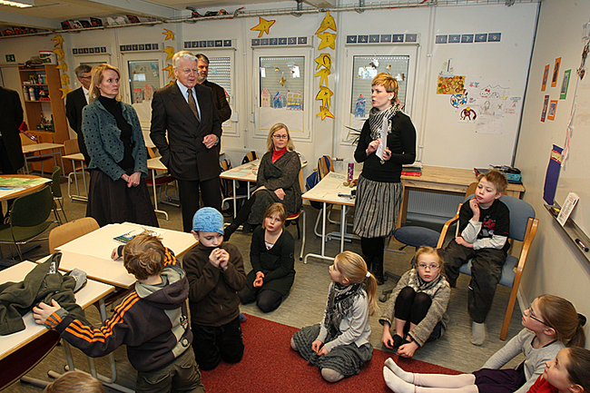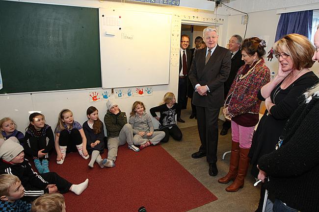 Forsetahjón ásamt börnun í 1. og 2. bekk.