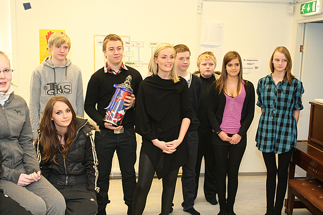 Í hópi nemenda með heilræðin í krukku.