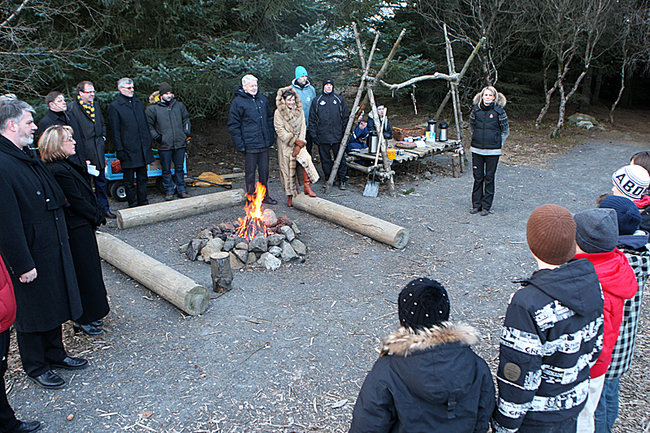 Boðið upp á skógarkakó og flatbrauð í Björnslundi.