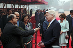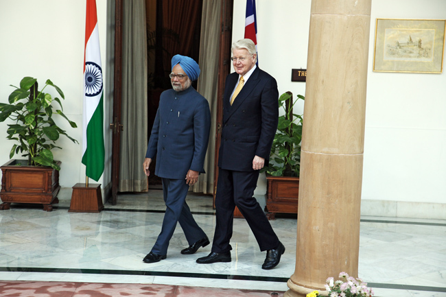 Gengið til fundar með Singh forsætisráðherra í ráðherrabústaðnum Hyderabad House.