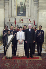 Forsetahjón heilsa forseta Indlands frú Pratibha Patil og Singh forsætisráðherra.
