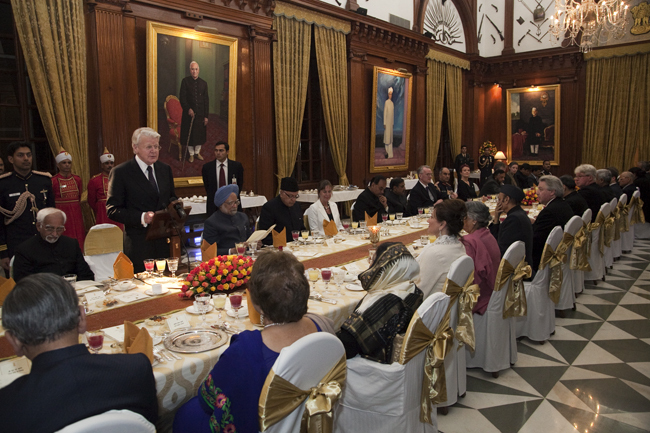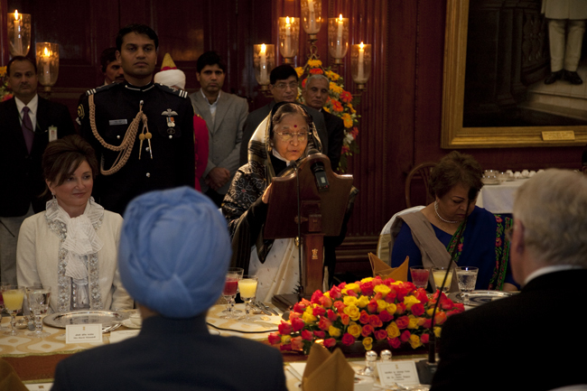 Forseti flytur ræðu í hátíðarkvöldverði honum til heiðurs í boði forseta Indlands, Pratibha Patil.