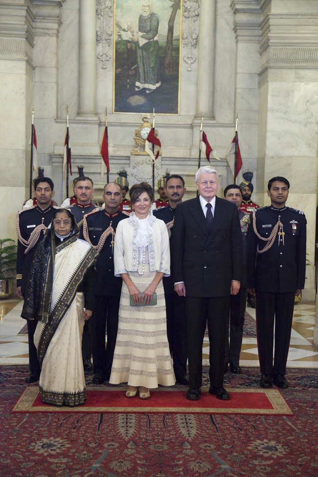 Í forsetahöllinni Rashtrapati Bhavan.
