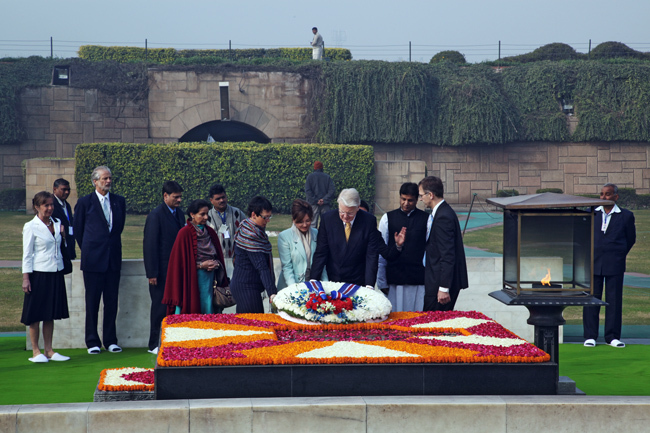 Forseti leggur blómsveig frá íslensku þjóðinni við grafreit Gandhis.