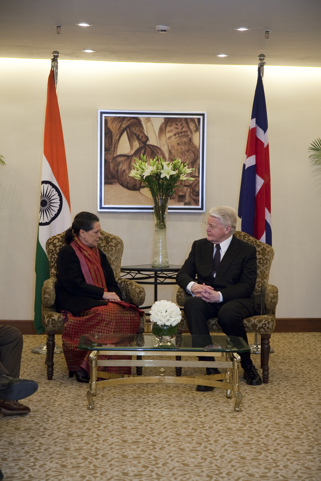 Frá fundi með Soniu Gandhi.