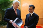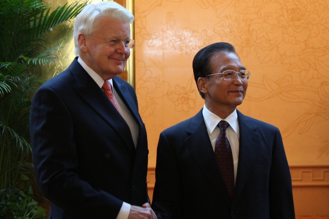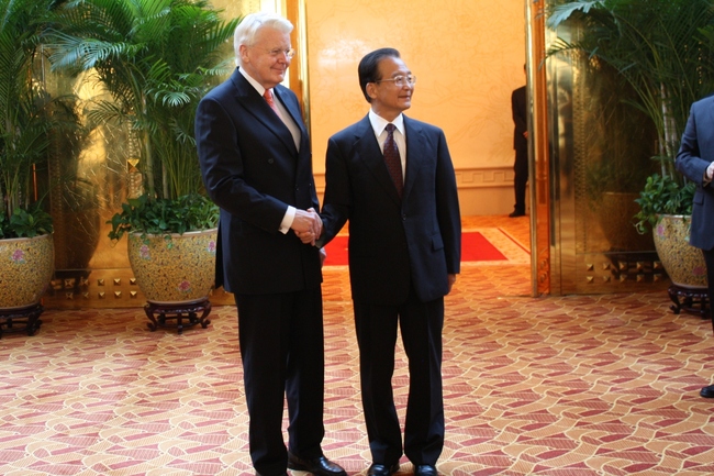 Forseti Íslands kominn til fundar við Wen Jiabao forsætisráðherra.