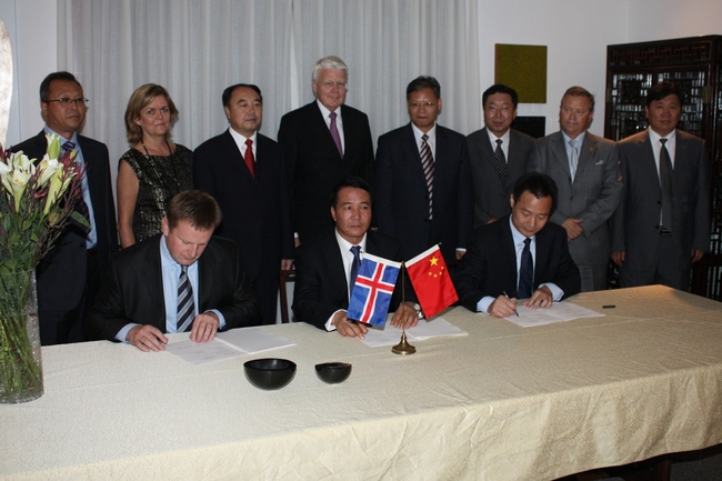 Frá undirritun jarðhitasamnings við fulltrúa Innri-Mongólíu í íslenska sendiráðinu í Beijing.
