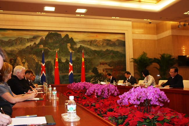 Frá viðræðufundi forseta Íslands og forsætisráðherra Kína Wen Jiabao.