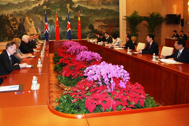 Frá viðræðufundi forseta Íslands og forsætisráðherra Kína.