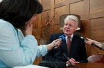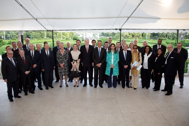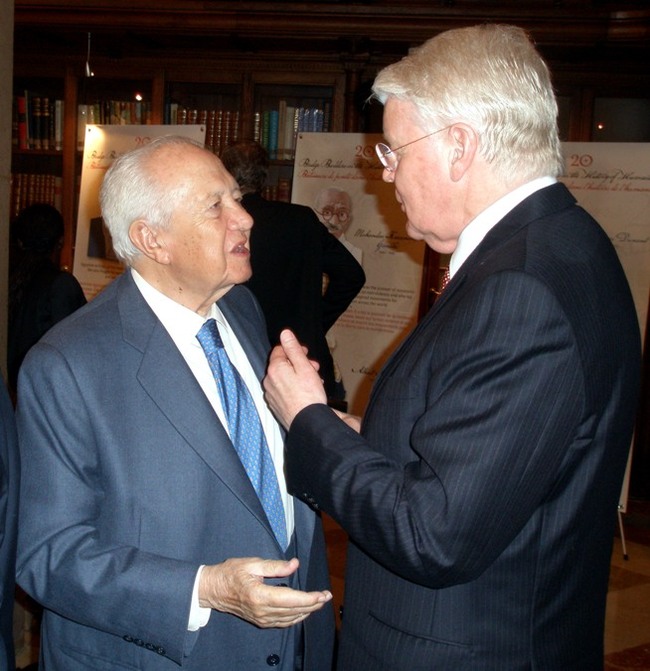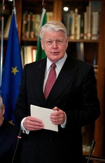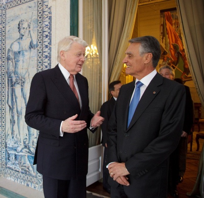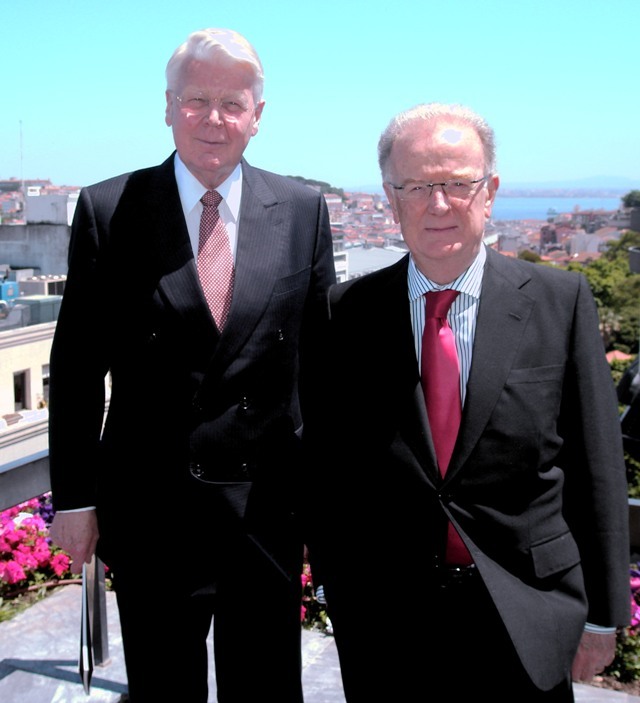 Forseti Íslands ásamt Hans de Jonge, fyrrum framkvæmdastjóra efnahagsnefndar Evrópuráðsins og Harry Aarts, fyrrum þingmanni frá Hollandi en þeir tveir voru ásamt forseta ábyrgðarmenn stefnumótunar Evrópuráðsins gagnvart þróunarlöndum í upphafi níunda áratugarins. Ljósmynd: Alban Bodineau.