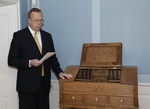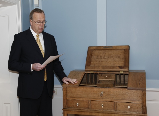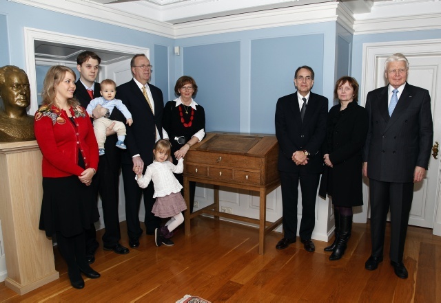 Afkomendur Ragnars Ásgeirssonar og venslafólk sem gáfu forsetaembættinu skrifpúlt Sveinbjarnar Egilssonar.