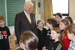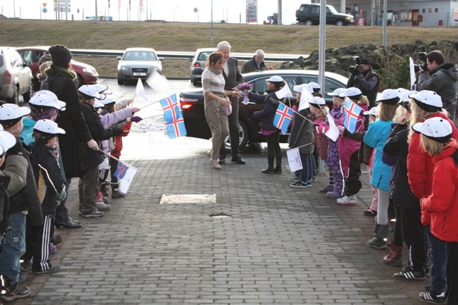 Forsetafrúin fær hlýlegar móttökur í Lækjarskóla.