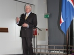 Forseti ávarpar samkomu nemenda og starfsmanna Lækjarskóla.