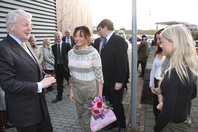 Forsetahjónin heilsa uppá nemendur.