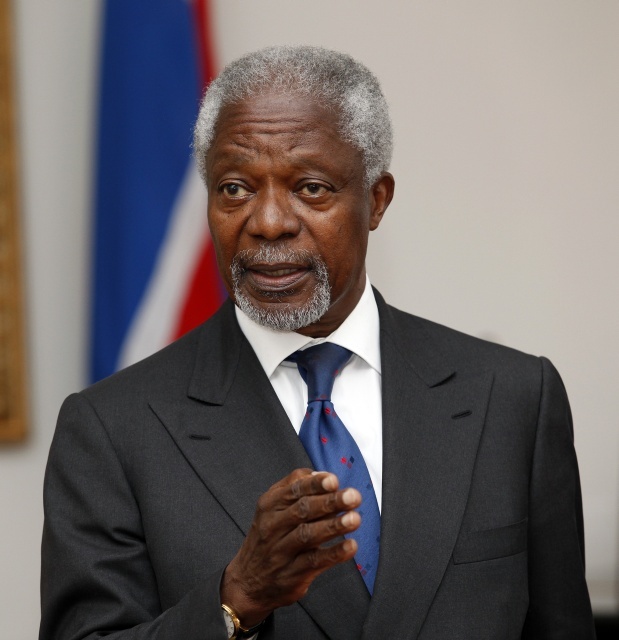 Kofi Annan, fyrrum framkvæmdastjóri Sameinuðu þjóðanna og handhafi friðarverðlauna Nóbels, kemur til Bessastaða 6. október 2011.