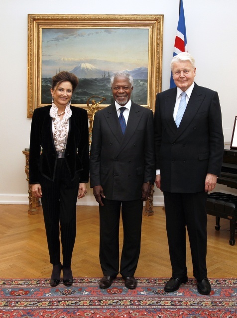 Forsetahjón ásamt Kofi Annan í móttökusal Bessastaða.