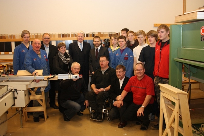 Forseti skoðar smíðisgripi í málmiðnaðardeild FSU.