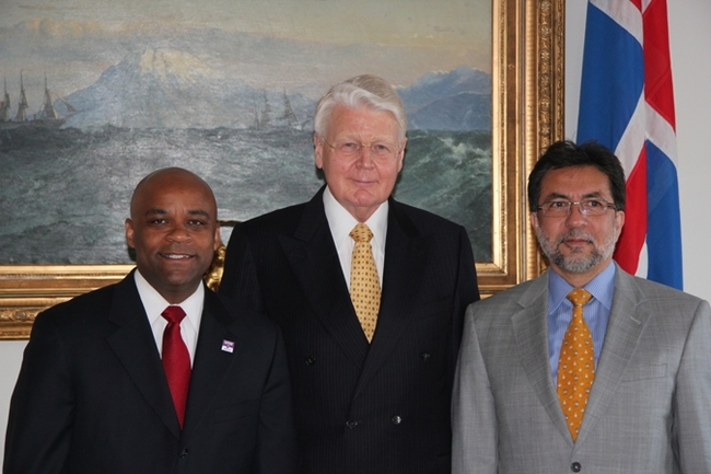 Forseti með borgarstjóra Denver (t.v.) og sendiherra Bandaríkjanna á Íslandi.