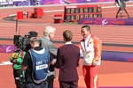 Forseti afhendir verðlaun á Ólympíumóti fatlaðra í London.