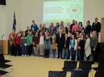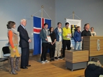 Nemendur fjölbrautaskólans taka við viðurkenningu fyrir góðan árangur í Lífshlaupinu.