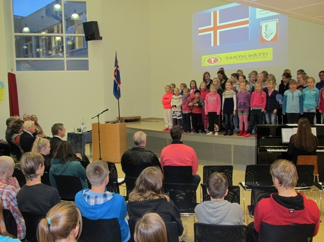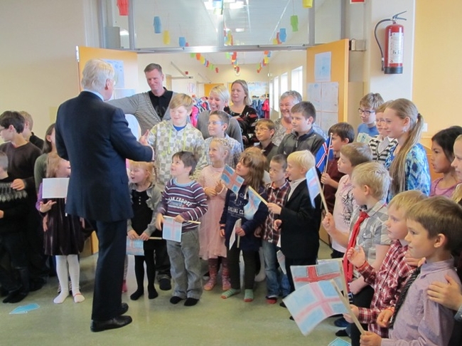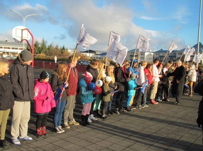 Glæsilegar móttökur við Myllubakkaskóla í Reykjanesbæ.