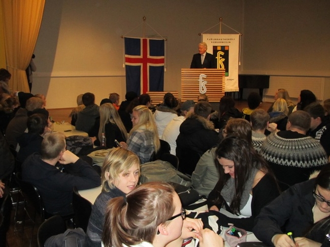 Forseti hlustar á ræðu í Fjölbrautaskóla Suðurnesja.