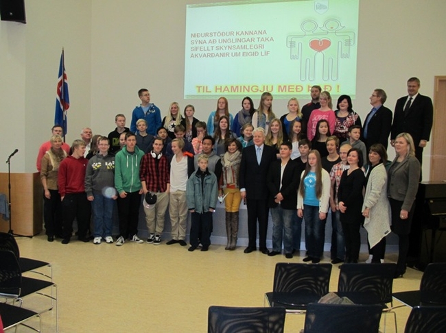 Við upphaf umræðufundar um forvarnarmál í Myllubakkaskóla.
