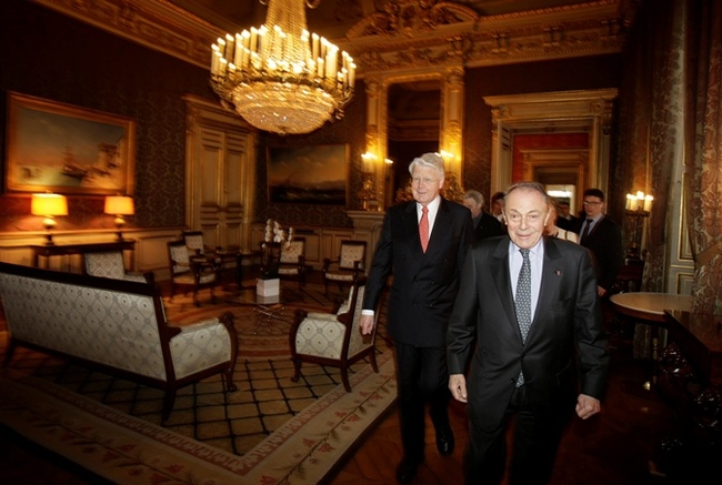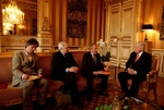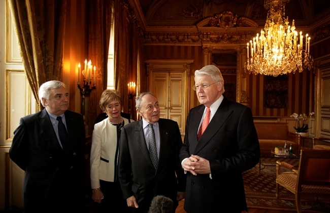 Sendiherra Frakklands á Íslandi, sendiherra Íslands í Frakklandi og Michel Rocard ásamt forseta í franska utanríkisráðuneytinu.