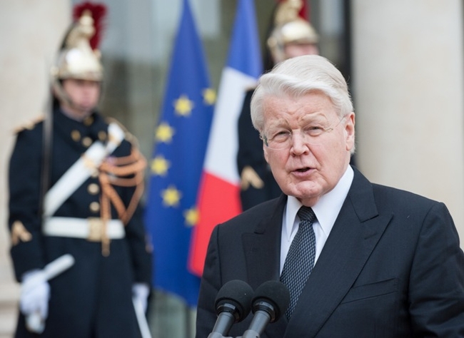 Rætt við Michel Rocard (næst forseta) og Marc Bouteiller, sendiherra Frakklands á Íslandi.